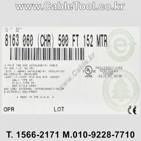 BELDEN 8163, 150m, 3Pair 24AWG, UL CM, UL AWM 2493 EIA RS-232/422, DMX512(조명제어), 저압 아날로그 신호(4-20mA), 저압 디지털 제어(24V), 디지털오디오, 판넬배선