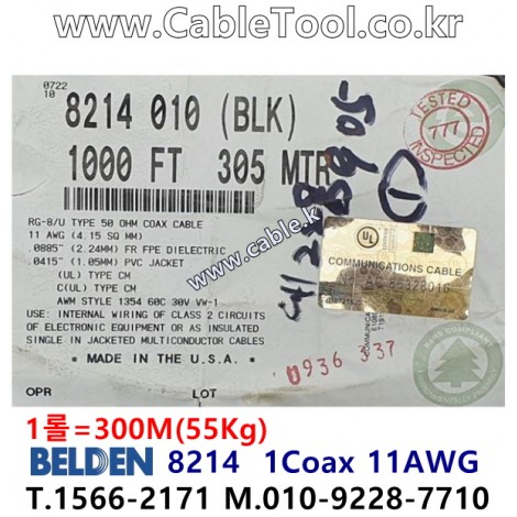 300m 벨덴8214 미터당 ₩22,720 벨덴케이블 8214 BELDEN 8214 1Coax 11AWG > 벨덴케이블 RG8 50옴 동축케이블| 품명 | 상품페이지 참고 |