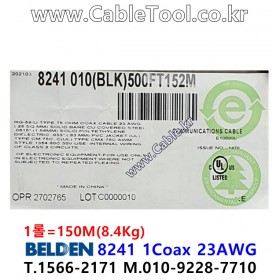 150m(롤) 벨덴8241 미터당 ₩2,790 벨덴케이블 8241 BELDEN 8241 1C 23AWG RG59 동축케이블