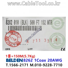 150m 벨덴 8262 미터당 ₩3,730 벨덴케이블 8262 BELDEN 1Coax 20AWG