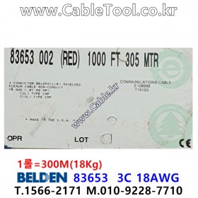 300m(롤) 벨덴 83653 미터당 ₩18,590 벨덴케이블 83653 BELDEN (Red) Plenum-Rated 오디오 및 계측 제어용 케이블