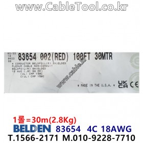 벨덴 BELDEN 83654, Red, 30m, 4C 18AWG, 고온 및 저온용(-70°C to +200°C), ULCMP, NFPA 262 오디오, 제어, 계장용