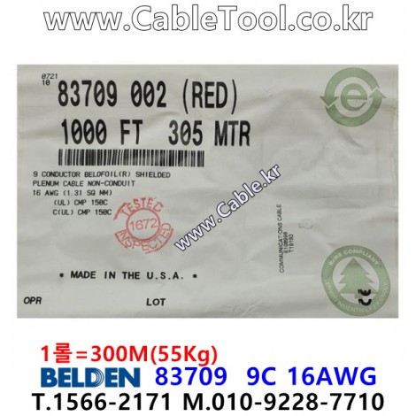 300m(롤) 벨덴83709 (미터당 ₩126,670) 벨덴케이블 83709 BELDEN 83709 9C 16AWG Plenum 자켓 CMP 레드 > 벨덴케이블 Plenum 자켓 CMP | 품명 | 상품페이지 참고 |