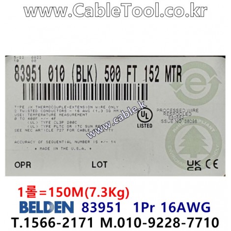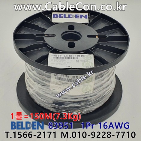 150m(롤) 벨덴83951 (미터당 ₩10,000) 벨덴케이블 83951 BELDEN 83951 1Pr 16AWG Paired 블랙 > 벨덴케이블 Paired | 품명 | 상품페이지 참고 |