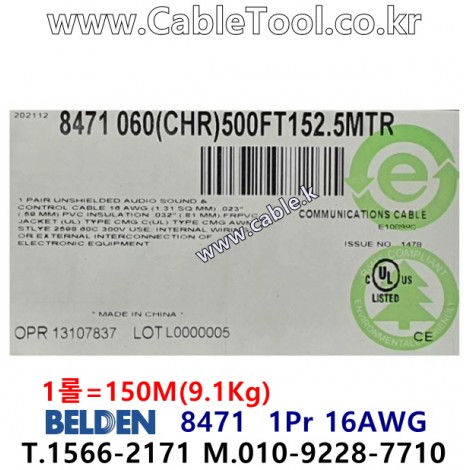 | 제조자 | 벨덴케이블 BELDEN Cable 한국총판 케이블툴㈜ www.CableTool.co.kr |