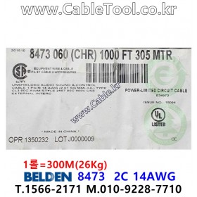 300m(롤) 벨덴8473 미터당 ₩6,850 벨덴케이블 8473 BELDEN 8473 2C 14AWG 주석도금 UL/CSA 600V제어용