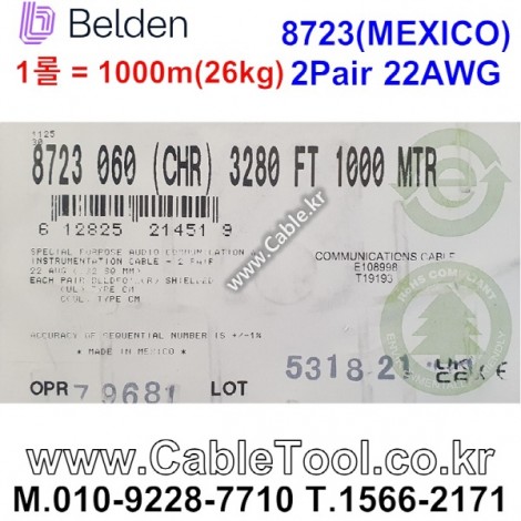 1000m(롤) 벨덴8723(MEXICO) 벨덴케이블 8723 BELDEN 8723 2Pr 22AWG 라인레벨(MEXICO) > 벨덴케이블 UL/CSA 300V계장용| 품명 | 상품페이지 참고 |