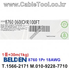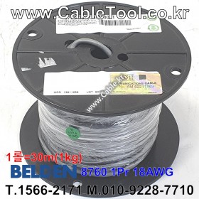 30m(롤) 벨덴8760 미터당 ₩2,260 벨덴케이블 8760 BELDEN 8760 2C 18AWG UL/CSA 300V계장용