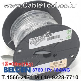 벨덴케이블 BELDEN 8760, 30m, 1Pair 18AWG, CM, UL 2092, UL1685 (UL Loading), IEC 60332-1-2