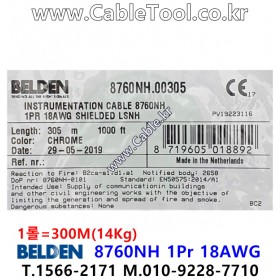 300m(롤) 벨덴8760NH (미터당 ₩9,650) 벨덴케이블 8760NH BELDEN 8760NH 1Pair 18AWG UL/CSA 300V계장용 크롬