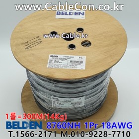 벨덴케이블 BELDEN 8760NH, 회색, 300m, 1Pair 18AWG, LSZH, CPR B2ca-s1,d1,a1, IEC 60332-1-2 and IEC 60332-3-24, IEC 60754-1 and 2
