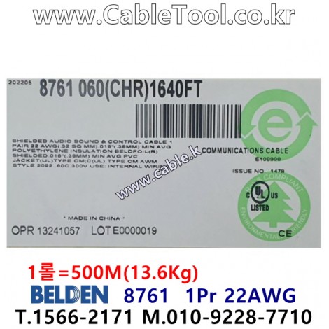 500m(롤) 벨덴8761 미터당 ₩1,730 벨덴케이블 8761 BELDEN 8761 1Pr 22AWG Paired > 벨덴케이블 Paired | 품명 | 상품페이지 참고 |