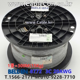 벨덴케이블 BELDEN 8772, 300m, 3C 20AWG, CM, UL 2093, UL1685 UL Loading, FT1, IEC 60332-1-2, CPR Eca