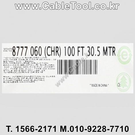 | 제조자 | 벨덴케이블 BELDEN Cable 한국총판 케이블툴㈜ www.CableTool.co.kr |