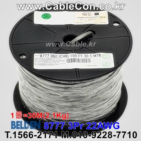30m(롤) 벨덴8777 미터당 ₩3,930 벨덴케이블 8777 BELDEN 8777 3Pr 22AWG 오디오멀티 > 벨덴케이블 Modbus | 품명 | 상품페이지 참고 |