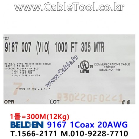 300m 벨덴9167 미터당 ₩1,870 벨덴케이블 9167 BELDEN 9167 1Coax 20AWG 바이올렛 > 벨덴케이블 RG59 75옴 동축케이블| 품명 | 상품페이지 참고 |