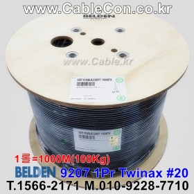 1000m(롤) 벨덴9207 (미터당 ₩4,700) 벨덴케이블 9207 BELDEN 9207 1Pair 20AWG Twinax 블랙