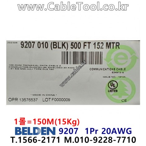 150m(롤) 벨덴9207 (미터당 ₩4,750) 벨덴케이블 9207 BELDEN 9207 1Pair 20AWG Twinax 블랙 > 벨덴케이블 Twinax | 품명 | 상품페이지 참고 |