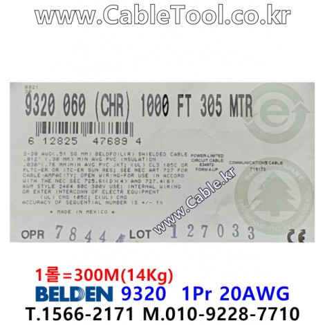 300m 벨덴9320 미터당 ₩4,640 벨덴케이블 9320 BELDEN 9320 1Pair 20AWG > 벨덴케이블 Paired | 품명 | 상품페이지 참고 |