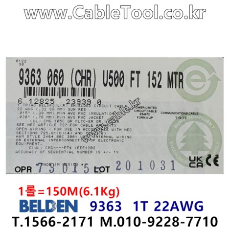 150m 벨덴9363 미터당 ₩4,520 벨덴케이블 9363 BELDEN 9363 1Triad 22AWG > 벨덴케이블 Multi Conductor| 품명 | 상품페이지 참고 |