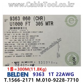300m 벨덴9363 미터당 ₩3,940 벨덴케이블 9363 BELDEN 9363 1Triad 22AWG