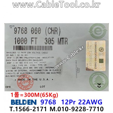 300m(롤) 벨덴 9768 미터당 ₩16,070 벨덴케이블 9768 BELDEN 오디오멀티 12Pair 22AWG > 벨덴케이블 UL/CSA 300V계장용| 품명 | 상품페이지 참고 |