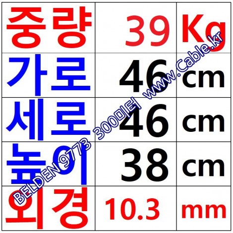 300m(롤) 벨덴9773 미터당 ₩8,200 벨덴케이블 9773 BELDEN 9773 3Pr 18AWG 오디오멀티 UL/CSA 300V계장용 > 벨덴케이블 UL/CSA 300V계장용| 품명 | 상품페이지 참고 |