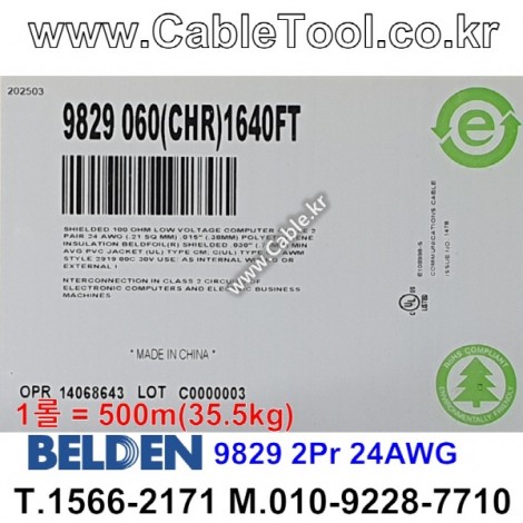 500m(롤) 벨덴9829 미터당 ₩4,110 벨덴케이블 9829 BELDEN 9829 2Pr 24AWG DMX-512 > 벨덴케이블 DMX512 | 품명 | 상품페이지 참고 |