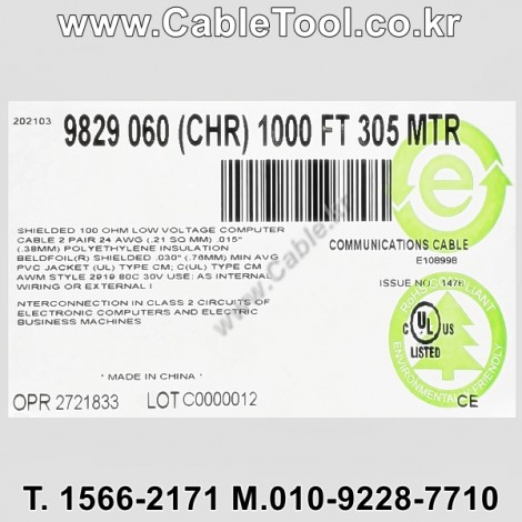 | 제조자 | 벨덴케이블 BELDEN Cable 한국총판 케이블툴㈜ www.CableTool.co.kr |