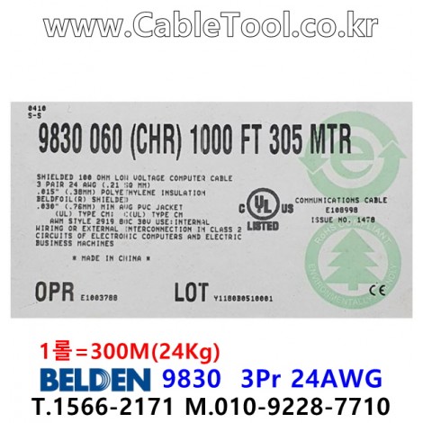 300m(롤) 벨덴9830 미터당 ₩5,740 벨덴케이블 9830 BELDEN 9830 3Pr 24AWG RS-422 DMX-512 > 벨덴케이블 RS422 | 품명 | 상품페이지 참고 |