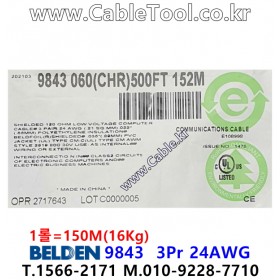 150m 벨덴 9843 미터당 ₩6,370 벨덴케이블 9843 BELDEN RS485 3Pair 24AWG