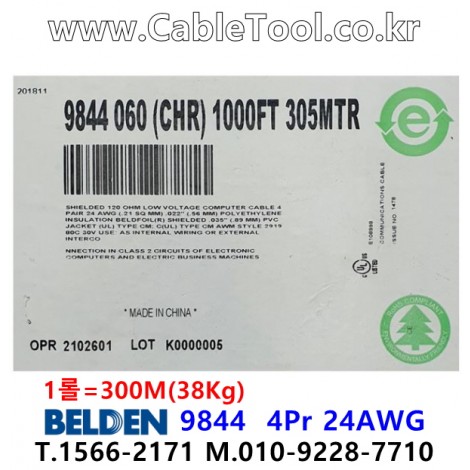 300m 벨덴 9844 미터당 ₩9,100 벨덴케이블 9844 BELDEN RS485 4Pair 24AWG > 벨덴케이블 RS485 | 품명 | 상품페이지 참고 |