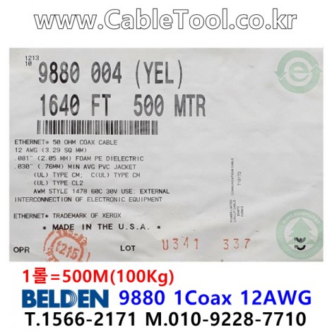 500m 벨덴9880 미터당 ₩24,900 벨덴케이블 9880 BELDEN 9880 1Coax 12AWG 옐로우 > 벨덴케이블 Ethernet/IP | 품명 | 상품페이지 참고 |