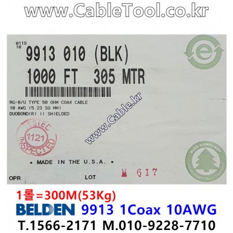 300m(롤) 벨덴9913 미터당 ₩9,600 벨덴케이블 9913 BELDEN 9913 1C 10AWG RG-8 > 벨덴케이블 RG8 50옴 동축케이블| 품명 | 상품페이지 참고 |