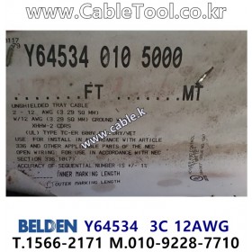 벨덴케이블 BELDEN Y64534, 1500m, 3C 12AWG, 600V TC-ER, BELDEN 28110A but Core Color: Black, Red, Green Option