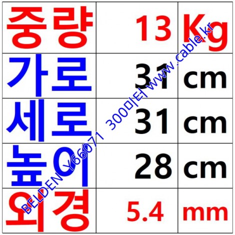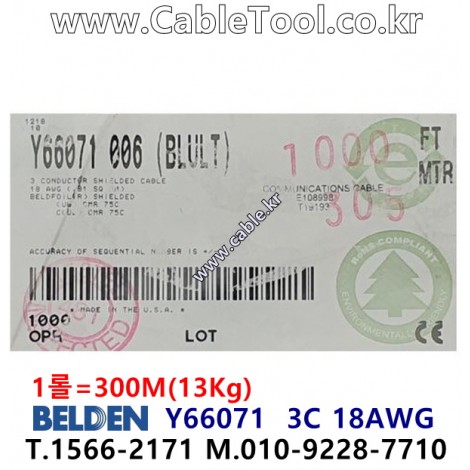 300m(롤) 벨덴Y66071 (미터당 ₩4,400) 벨덴케이블 Y66071 BELDEN Y66071 3C 18AWG Multi Conductor > 벨덴케이블 Multi Conductor| 품명 | 상품페이지 참고 |