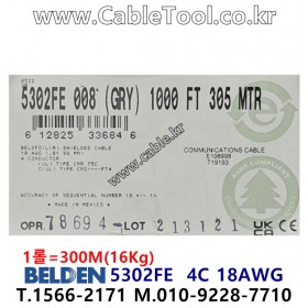 300m(롤) 벨덴5302FE (미터당 ₩5,600) 벨덴케이블 5302FE BELDEN 5302FE 4C 18AWG Security & Alarm 그레이 > 벨덴케이블 Security & Alarm| 품명 | 상품페이지 참고 |