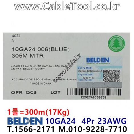 300m 벨덴10GA24 미터당 ₩3,470 벨덴케이블 10GA24 BELDEN 10GA24 4Pair 23AWG 블루 > 벨덴케이블 Paired 카다로그 바로가기: http://www.Cable.kr