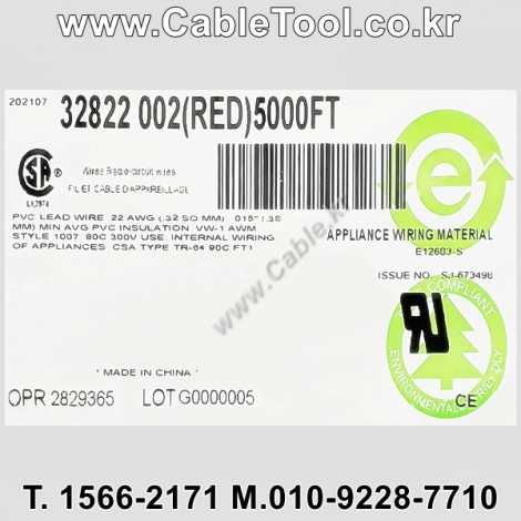 1500m(롤) 벨덴32822 (미터당 ₩1,380) 벨덴케이블 32822 BELDEN 32822 1Str 22AWG Hook Up Wire (레드) > 벨덴케이블 Hook Up Wire카다로그 바로가기: http://www.Cable.kr