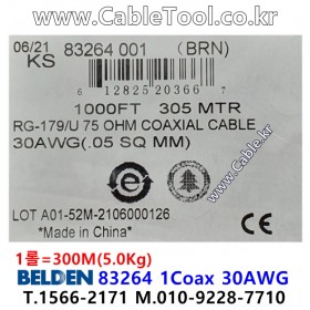 벨덴케이블 BELDEN 83264, 갈색, 300m, 1Coax 30AWG, 75Ohm, M17/94-RG179, FEP Jacket, Commercial Non-QPL