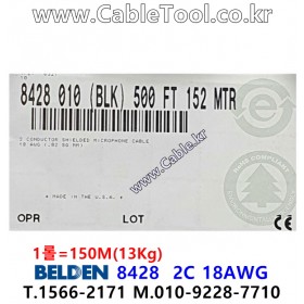 벨덴케이블 BELDEN 8428, 검정, 150m, 2C 18AWG, Microphone and Audio Balanced Cable