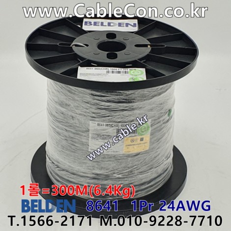 300m(롤) 벨덴8641 (미터당 ₩2,490) 벨덴케이블 8641 BELDEN 8641 1Pair 24AWG UL/CSA 300V계장용 크롬그레이 > 벨덴케이블 UL/CSA 300V계장용| 품명 | 상품페이지 참고 |