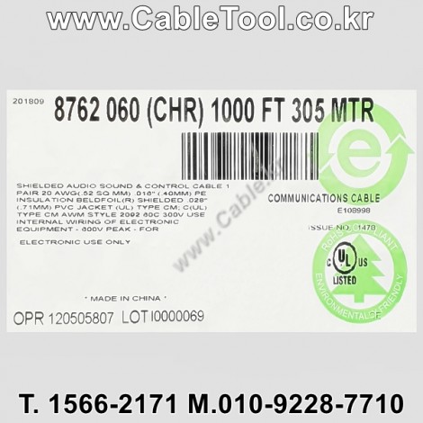 | 제조자 | 벨덴케이블 BELDEN Cable 한국총판 케이블툴㈜ www.CableTool.co.kr |