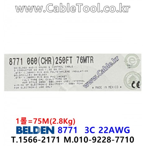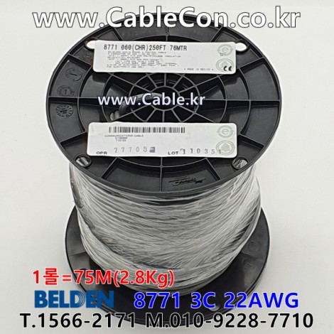 75m(롤) 벨덴8771 (미터당 ₩2,480) 벨덴케이블 8771 BELDEN 8771 3C 22AWG Multi Conductor (크롬) > 벨덴케이블 Multi Conductor| 품명 | 상품페이지 참고 |