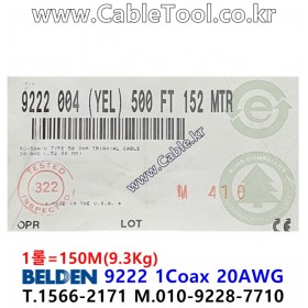 150m(롤) 벨덴9222 미터당 ₩5,690 벨덴케이블 9222 BELDEN 9222 1C 20AWG RG-58 50옴 동축케이블