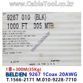 300m 벨덴9267 (미터당 ₩12,430) 벨덴케이블 9267 BELDEN 9267 1Coax 20AWG RG59 75옴 동축케이블 블랙