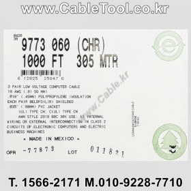 300m(롤) 벨덴9773 미터당 ₩8,200 벨덴케이블 9773 BELDEN 9773 3Pr 18AWG 오디오멀티 UL/CSA 300V계장용