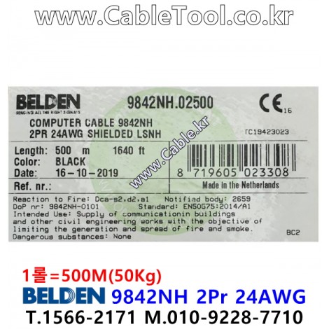 500m(롤) 벨덴9842NH (미터당 ₩14,690) 벨덴케이블 9842NH BELDEN 9842NH 2Pair 24AWG RS485 > 벨덴케이블 RS485 | 품명 | 상품페이지 참고 |