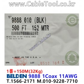 벨덴케이블 BELDEN 9888, 검정, 150m, 1Coax 11AWG, RG-8/U Type, CA Prop 65, Outdoor