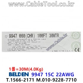 BELDEN 9947, 30m, RS 232, 15C x 22(7X30)AWG,호일+편조차폐, PVC Jacket, UL AWM 2464, CMG